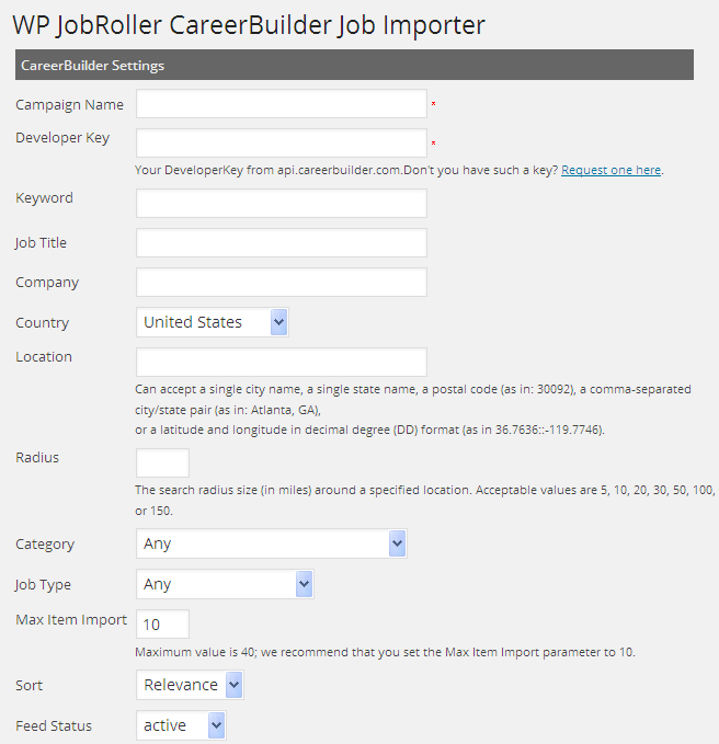 - Run Every : Built in cron feature that automatically fetches products from CareerBuilder site that can be set to run after specific periods like day, week etc