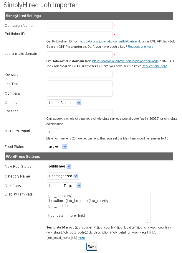 SimplyHired Job Importer Plugin Import job from SimplyHired according to your given parameter.
