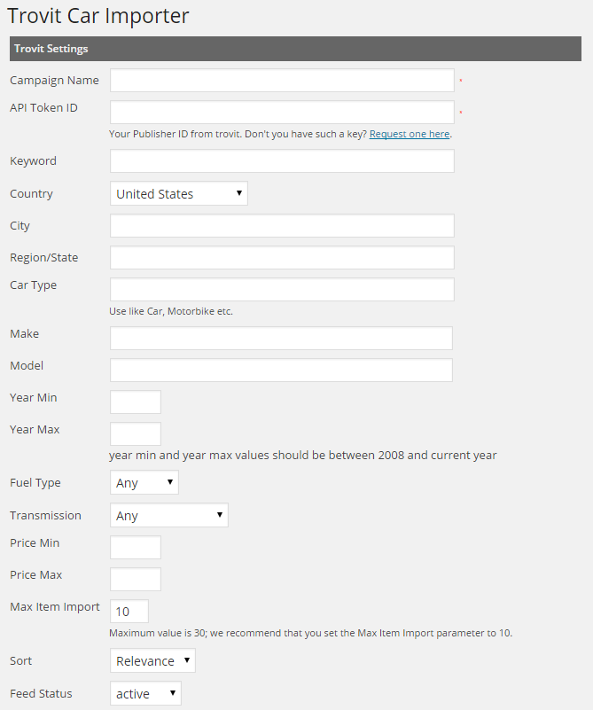 Install Trovit Car Importer WordPress Plugin